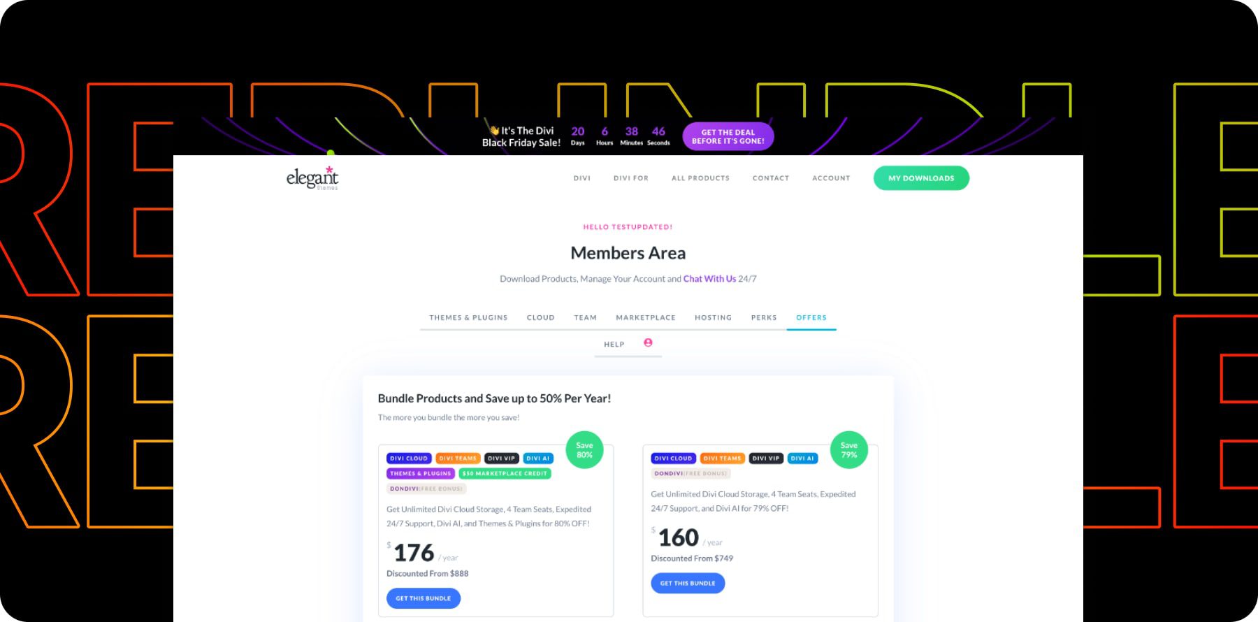 - 🎉 Repackage Your Club for As much as 80% Off — Present participants can repackage their present subscriptions right into a Black Friday package deal to scale back subscription prices and liberate extra options. Release Divi AI, Cloud, Groups, VIP Toughen, DonDivi, and a loose $50 market whilst decreasing your present subscription price through as much as 80% — however provided that you act ahead of the sale ends.