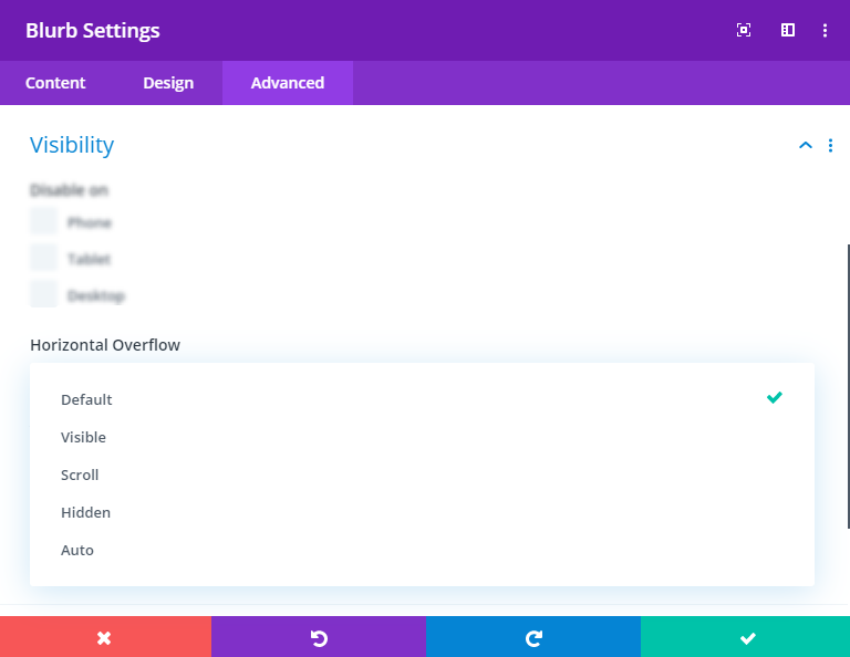 - Visual – The overflowing content material will stay visual and now not transform clipped when extending out of doors the field. Since that is the default environment in Divi, you’re going to hardly ever want to choose it.