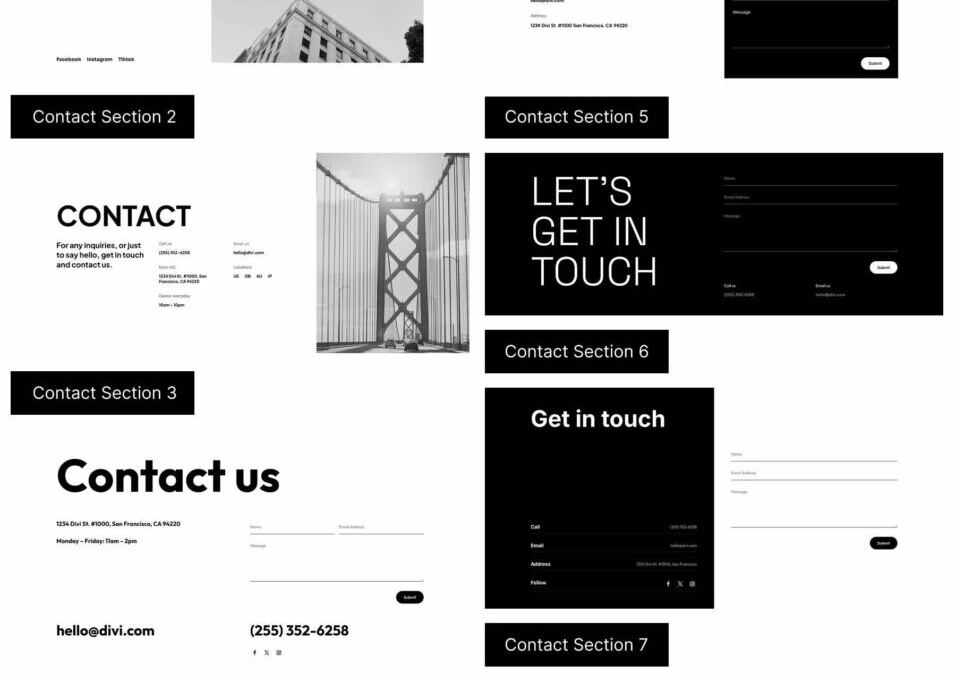 Divi 5 makes it simple to construct touch sections that glance polished, skilled, and in a position for actual inquiries. On this unfastened pack, you are going to in finding 7 Styled Touch Sections, every designed to assist guests succeed in out briefly the usage of transparent layouts, sturdy typography, and trendy shape styling. Drop one onto any web page, switch the main points, and you are prepared to move. No further setup required.