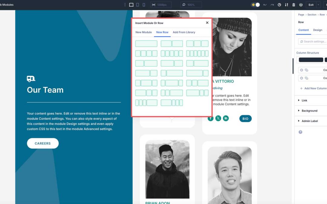 Showcasing your group builds believe and character to your logo. With Divi 5, you’ll create dynamic group member playing cards with layered content material, similar to a photograph, title, function, and bio, all inside a unmarried column. You’ll then incorporate Nested Rows into your structure for social media hyperlinks and a hyperlink to a person group web page. Save the Module Crew in your Divi Library, and including new group contributors at some point is a breeze.