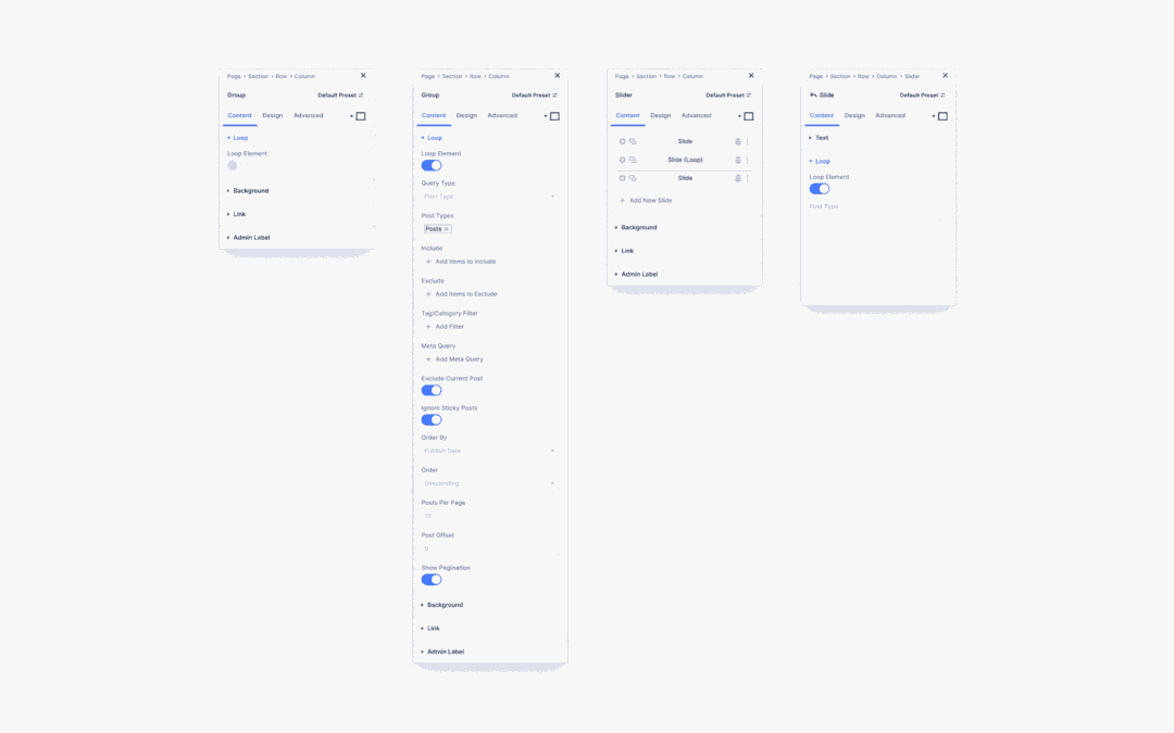 Toggle at the loop choice for any part, comparable to a row or column, and select which varieties of posts will fill the loop. You’ll regulate what content material seems to your loop through adjusting more than a few question choices.