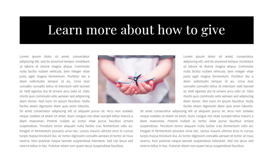 Create a brand new common segment with a one-column row. Then upload a picture module to the row with the picture of your opting for. The picture I’m the use of is from the Charity Structure Pack and is 400px by means of 250px.