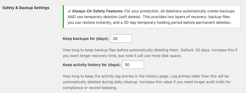 Cleansing up your media library shouldn’t really feel dangerous. That’s why WP Media Cleanup builds in a restoration machine from day one.