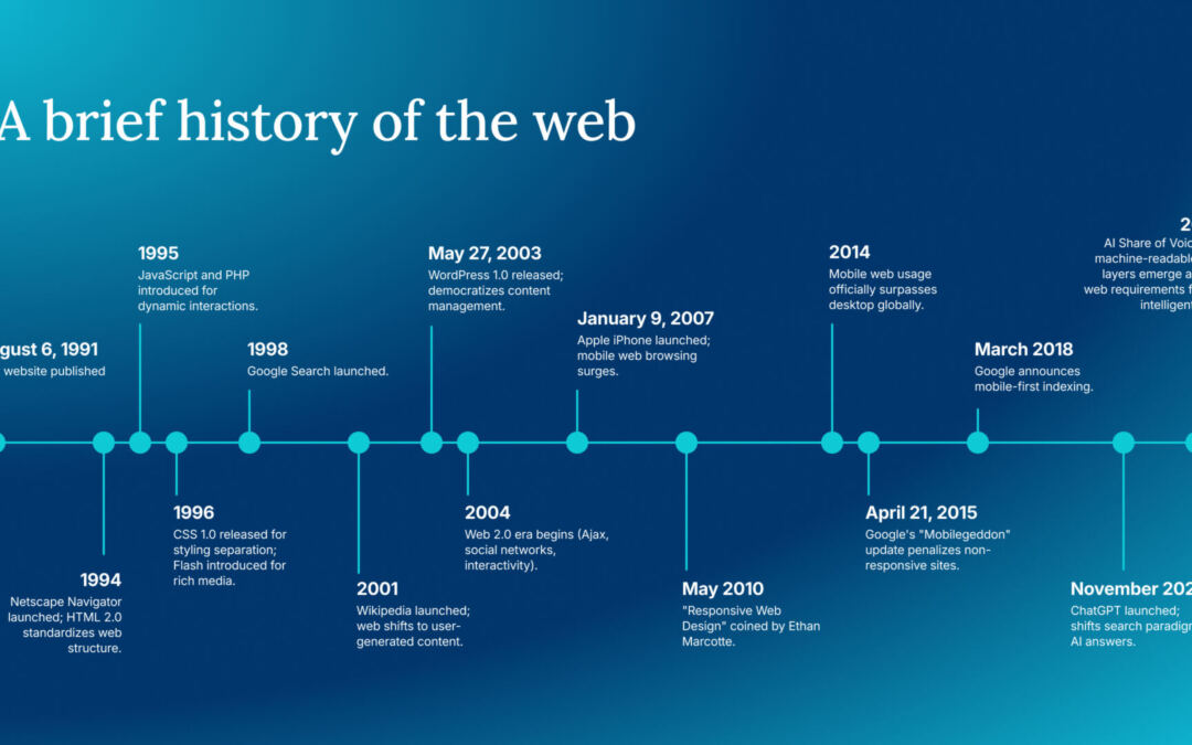 Tracing the timeline of web page evolution over the last 30 years, we see a constant trend of infrastructure transferring to fulfill new client conduct. Ethan Marcotte’s seminal article for A Checklist Aside, which coined the time period “responsive internet design,” drew the road within the sand for this profound shift.