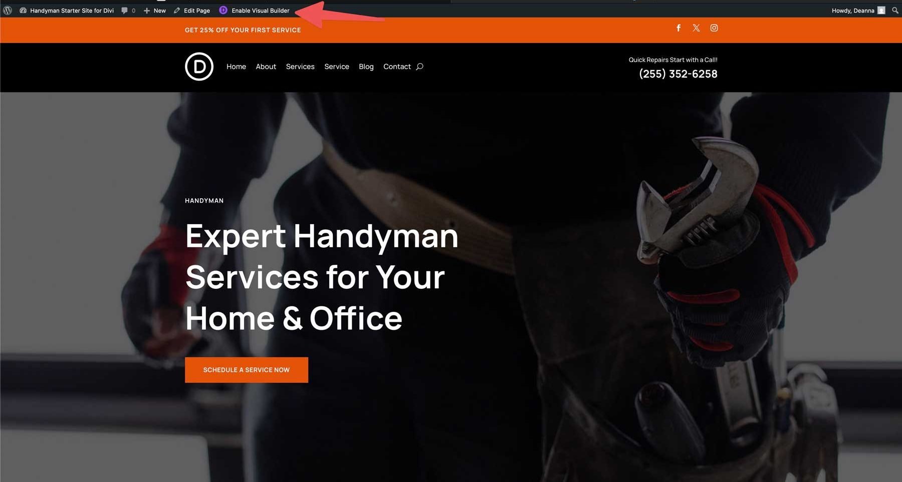 Let’s dive deeper into the Divi Handyman Starter Website and uncover what’s integrated!