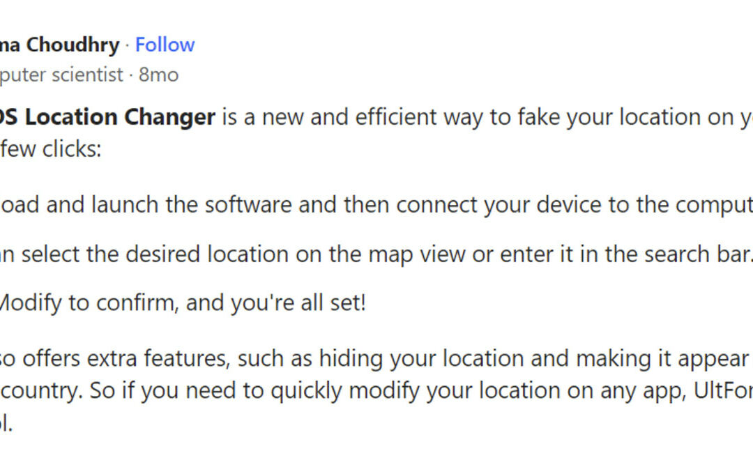 For those who’re in the hunt for a safe and loyal way to modify your GPS location for your iOS tool, UltFone Location Changer has you coated. It’s user-friendly, permitting you to switch your location with a unmarried click on. Customers on Quora have additionally beneficial it.
