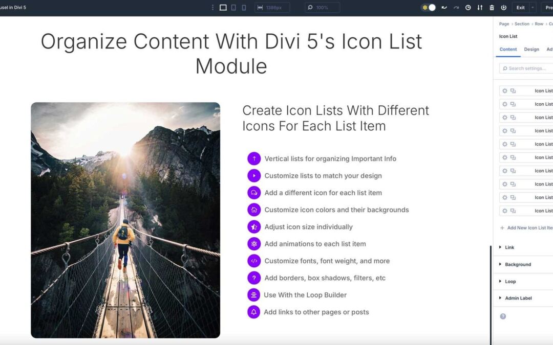 The Icon Listing module in Divi 5 is designed to create interesting, structured lists that strengthen your website online’s design. By means of permitting you to pair every record merchandise with a novel icon, this module transforms undeniable textual content into skilled, enticing content material.