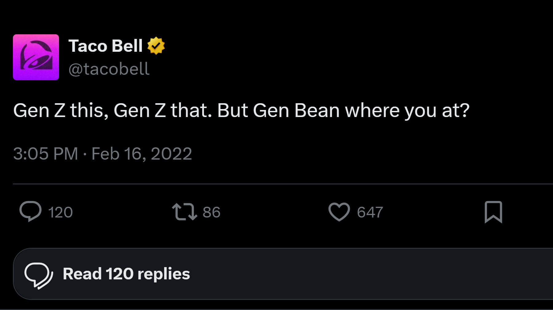 You’ll use your social media to have interaction together with your target audience without delay to be told about their needs and ship accordingly. Like Taco Bell does right here: