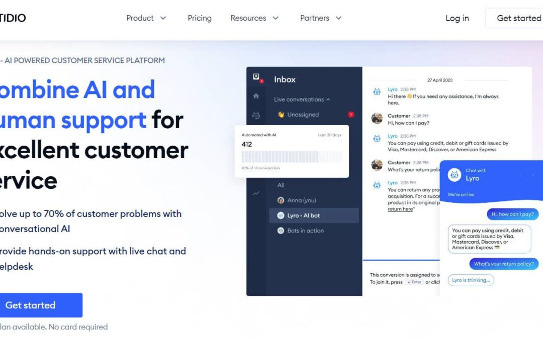 - Lyro, Tidio’s AI-powered chatbot, can unravel as much as 70% of shopper problems.