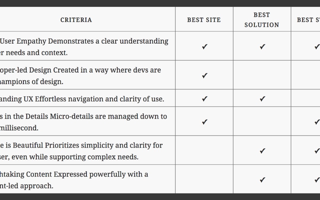 There shall be 9 awards falling below the kinds Very best Web site, Very best Resolution, and Very best Taste. The factors are as follows: