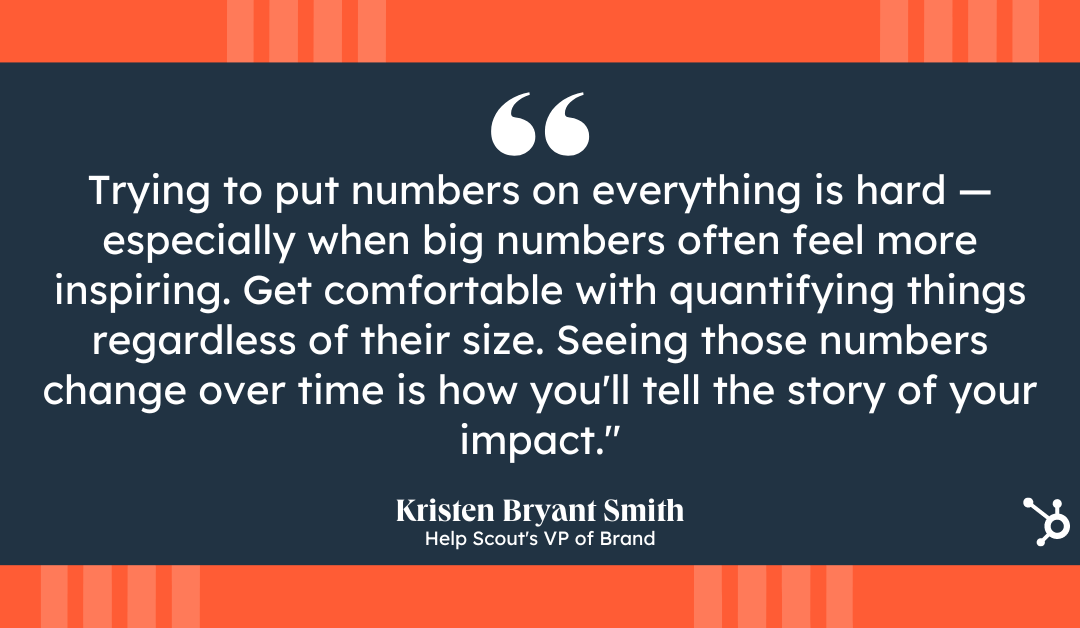 Smith acknowledges the problem of environment sensible objectives, however believes it is a muscle that may be advanced over the years. As she places it, “Looking to put numbers on the whole thing is difficult — particularly when giant numbers continuously really feel extra inspiring. Get pleased with quantifying issues without reference to their dimension. Seeing the ones numbers trade over the years is the way you’ll inform the tale of your affect.”